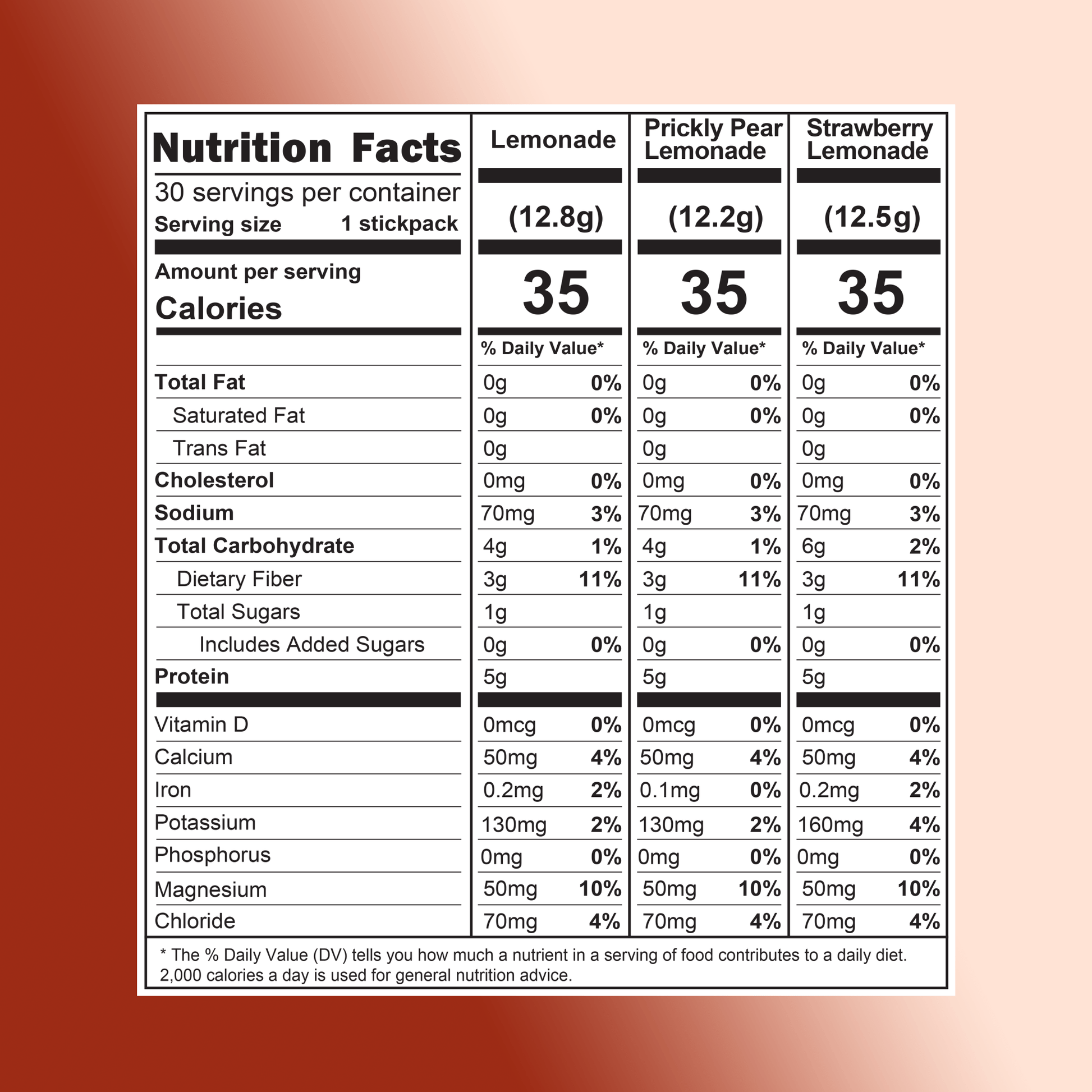 This trio of tangy-sweet favorites includes classic Lemonade, juicy Strawberry Lemonade, and a bold Prickly Pear Lemonade. Flavored with actual fruit, each sip tastes like summer—and helps support gut health, glowing skin, and daily hydration.